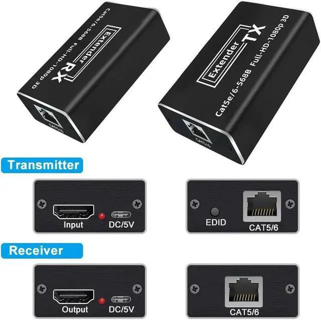 HDMI Extender with POC 1080P HDMI Extender 60m No Loss RJ45 to HDMI Extender Transmitter Receiver over Cat5e/Cat6