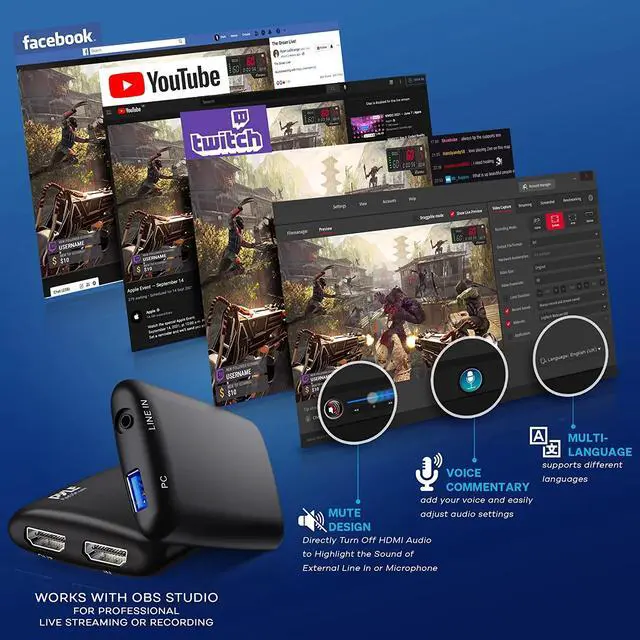 - VOICE COMMENTARY: Multi-language support for voice commentary, ideal for live broadcasts, conferences, video recording, teaching, and gaming entertainment