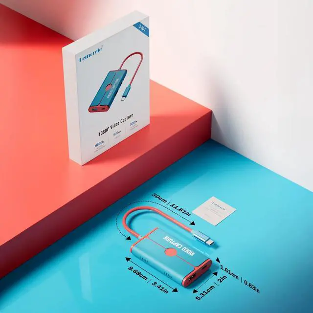 The DIXSG video capture card integrates video capture, multi-device expansion, and high-speed data transmission. It supports 1080P@60Hz video recording and live streaming, seamlessly connects to devices like the Nintendo Switch, mobile phones, tablets, and game consoles via a USB-C 3.0 port, and streams audio and video signals to OBS, XSplit, and other platforms in real time. It also features HDMI output for connecting to a monitor or TV for extended viewing, and supports 100W PD charging, perfect for charging while gaming. Product Specifications: Input Port: USB-C 3.0 (30cm red cable). Supported Output Resolution: HDMI 1920x1080@60Hz. PD Power Port: Supports 100W input and 85W output. Capture Port: USB-C for video signal capture. USB-A Port: USB 3.0, 5Gbps transfer rate. Compatible Devices: Switch, mobile phones, tablets, computers, game consoles, cameras, and more. Color: Red and blue. Weight and dimensions: 0.24 lb, 5.28 x 4.09 x 0.79 inches. Package: 1 capture card, 1 instruction manual.