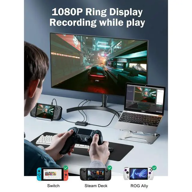 - This capture card is compatible with Steam Deck, Nintendo Switch, ROG Ally/Steam Deck, iPhone/iPad/Notebook, and other devices. It can be used as a Nintendo Switch dock replacement, allowing you to capture or livestream your games on the big screen. It connects seamlessly with OBS, XSplit, Zoom, TikTok, YouTube, and other streaming services plug and play. This HDMI capture card is suitable for HD capture, game live streaming, conference room projection, game recording, educational audio and video recording, medical imaging, and more.