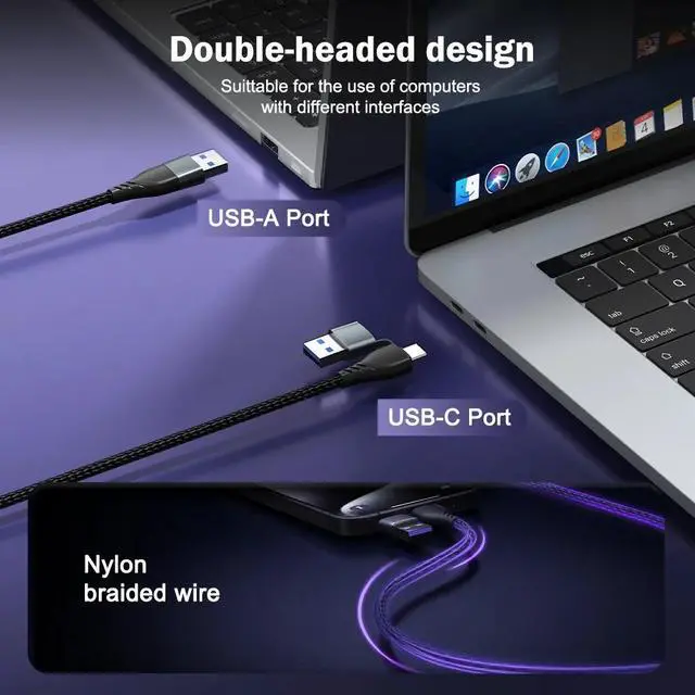 - The USB-A + USB-C two-in-one interface is compatible with nearly all computers equipped with USB-A or USB-C ports, eliminating the need for additional adapters and meeting different interface requirements.