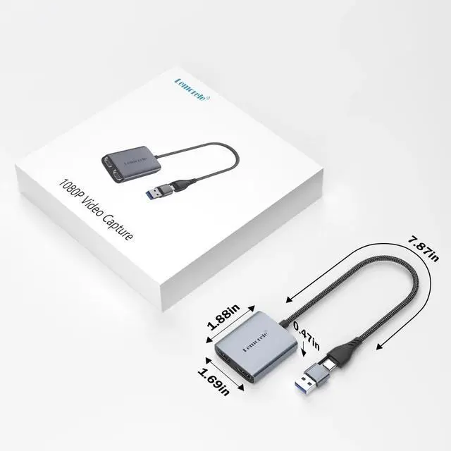 The DIXSG 1080P 60Hz HDMI Video Capture Card is ideal for gamers, educators, streamers, and content creators. It features 1080P 60Hz HDMI input and output, allowing for seamless, lag-free looping to secondary displays. Its dual USB-A and USB-C design ensures compatibility with laptops, desktops, and mobile devices, while its braided nylon cable and aluminum alloy casing provide both flexibility and durability. Plug and play, it easily records gameplay or livestreams on platforms like OBS, YouTube, TikTok, Twitch, and Zoom. Product Specifications: Maximum Resolution: 1080P @ 60Hz (capture and loop output). Video Ports: 1 HDMI Input, 1 HDMI Output. USB Ports: USB-A + USB-C. Cable Length: 20 cm (7.87 in). Cable Type: Nylon Braided. Compatibility: Windows, macOS, Linux, Android, iPadOS 17+ (supports direct recording from Nintendo Switch). Supported devices: PS5, Nintendo Switch, Xbox, DSLR cameras, smartphones, Steam. Supported software: OBS, TikTok, YouTube, Twitch, Zoom, VLC, PotPlayer, XSplit. Weight and dimensions: 0.16 lb, 3.58 x 3.15 x 0.63 inches. Includes: 1 capture card, 1 user manual.