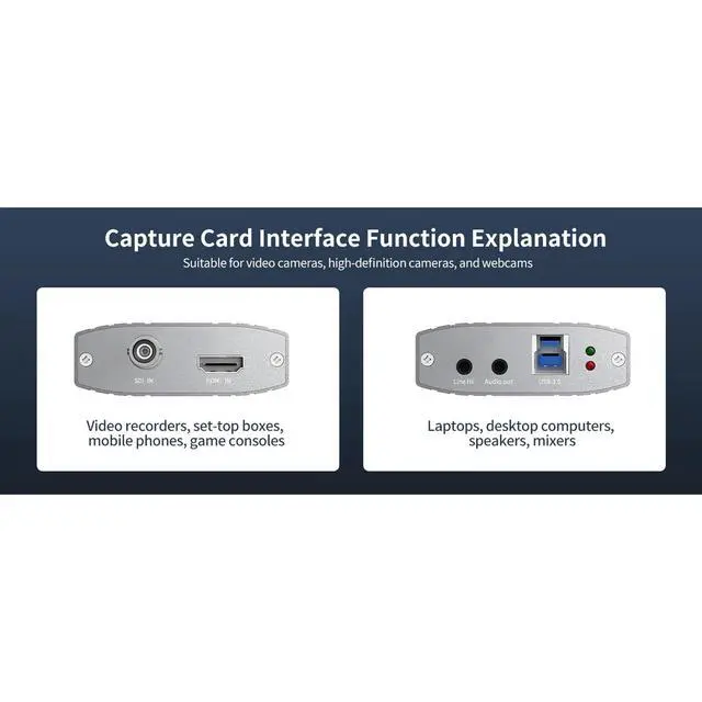 USB3.0 capture card for most scenarios, but the USB3.0 capture card must have a computer USB3.0 or USB3.0 interface to use (if you are a C-port computer, it is recommended that the computer connects to the docking station, the capture card USB interface to the docking station on the USB3.0 interface)
