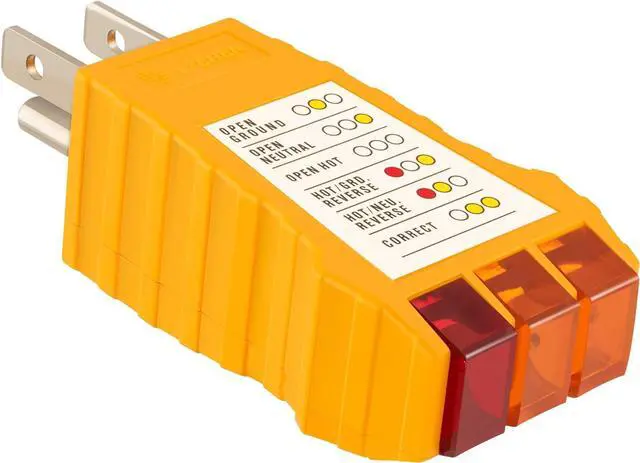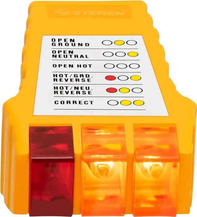 COLORED LIGHT INDICATORS The light colors will alert you if it detects any problems in standard receptacles. Lights indicate if wiring is correct, open hot, hot/ground reveresed, open ground, reverse polarity and open neutral