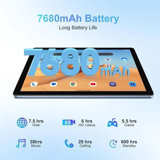 7680mAh Long last Battery+PC Mode This Tablets support Battery power saving mode, built-in high-capacity 7680mAh battery, through the excellent management of the long time to make use of it, you can enjoy the video watching, games, e-books, music, etc. This 10 inch Tablets supports a convenient PC mode, which allows you to run multiple applications at the same time.