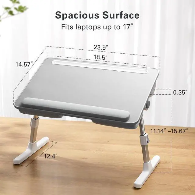 More Room For Your Legs: The laptop bed tray table provides a wide 20.1 amount of legroom underneath the desk for more comfort. The adjustable laptop stand is foldable for easy storage underneath or beside your bed, cabinet, or sofa.