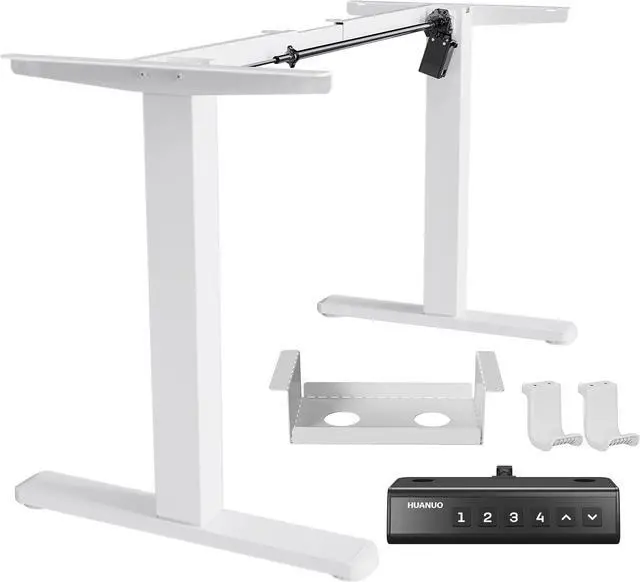 HUANUO Standing Desk Frame with 220lbs Powerful Brushless Motor, Thick T-Shaped Adjustable Desk Legs Made of Automotive-Grade Steel, for Max 75 x 35 Desktop, for Home Office, White Frame Only