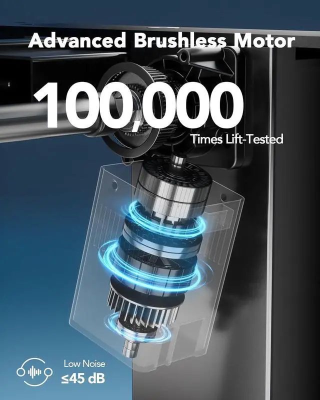 Powerful Brushless Motor: Equipped with an advanced brushless motor, this desk frame has passed a 100,000-cycle lift test fully loaded, ensuring reliable long-term performance. The ultra-quiet operation (45 dB) enables you to focus without distraction.