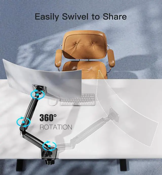 Full Motion Adjustability: Tilt (-30° to +80°), 360° rotation, 180° swivel, and 21.1" extension. Customize viewing angles while saving desk space.