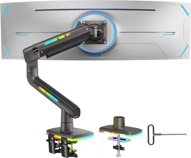 HUANUO 45 inch Monitor Arm, Heavy Duty Single Monitor Mount Holds 44 lbs for Ultrawide/Curved/Gaming Screen, Fully Adjustable with C-Clamp & Grommet Base, Max VESA 100x100mm, RGB
