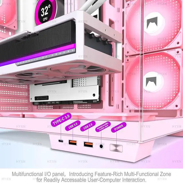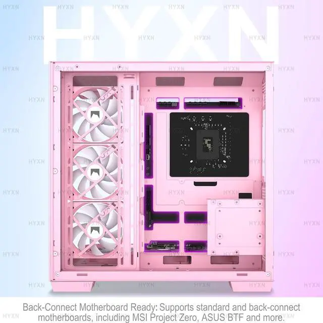 HYXN H1 HYXN ATX PC Case - Pre-Installed with 7 PWM ARGB Fans - Dual Cavity Mid-Tower PC Gaming Case - with Type-C - Can Hold up to 3X 360mm heatsinks simultaneously (Pink, H1)