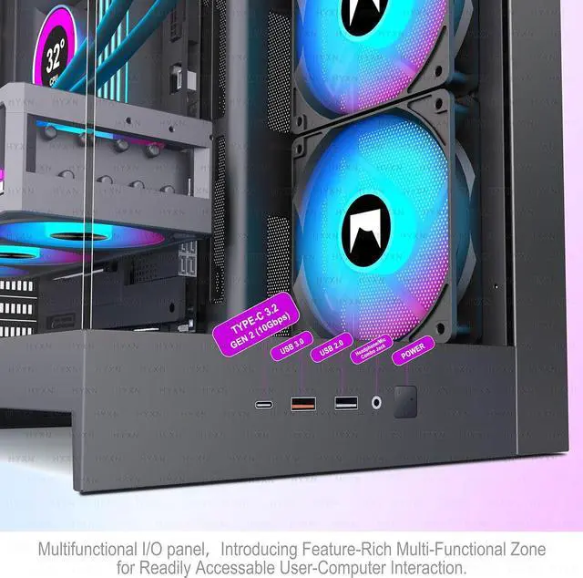 Front I/O Panel,1x Type-C 3.2(High-speed), 1 x USB 3.0, 1 x USB 2.0, Microphone & Audio, Power Button