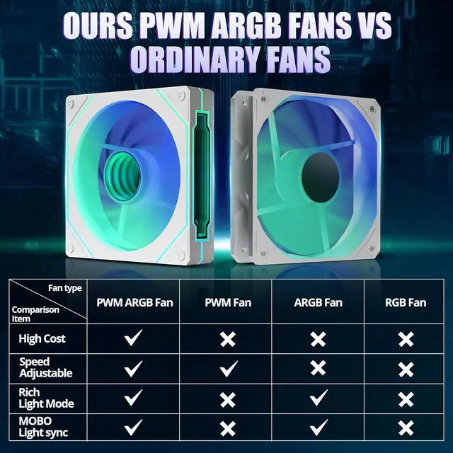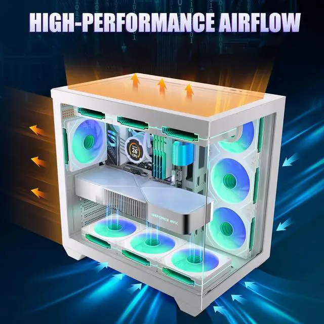 Want amazing cooling and cool lighting effects? LINEDEPOT's Gaming Pc Case With Fans has you covered with 7 pre-installed adjustable speed ARGB fans, which are a dream for lighting enthusiasts. You can manage everything via your motherboard software, customizing various colorful and captivating light modes. The fans feature anti-vortex blades for proper airflow inside the case. Additionally, the software allows you to fully control the fan speeds and keeps the side fans steadily drawing in air, resulting in better cooling than regular cases and prolonging the life of your hardware.