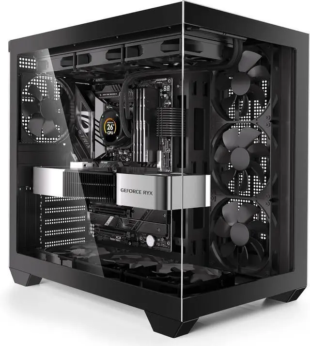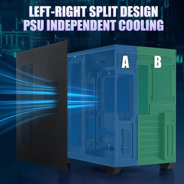 Practicality and style blend seamlessly in the Gaming Computer Case. Its sleek rectangular design keeps your desk neat and looks elegant. The two ultra-clear tempered glass panels allow natural light to pass through. Moreover, the tough glass is not only hard to break but also excellent at soundproofing, ensuring a comfortable workspace for work or gaming.