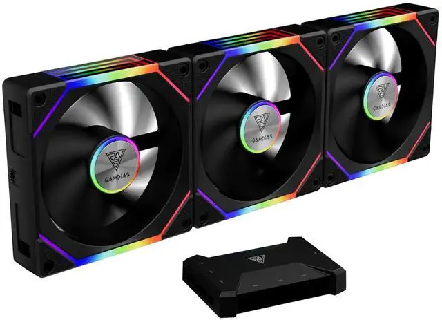 GAMDIAS 3 Pack 120mm Case Fan & 3 Reverse Blades & 1 USB Hub, ARGB PWM PC Fans with RGB Motherboards Sync, Daisy Chain via Cable Management, 30mm Thickness Case Fans with 75CFM Airflow with 2400RPM