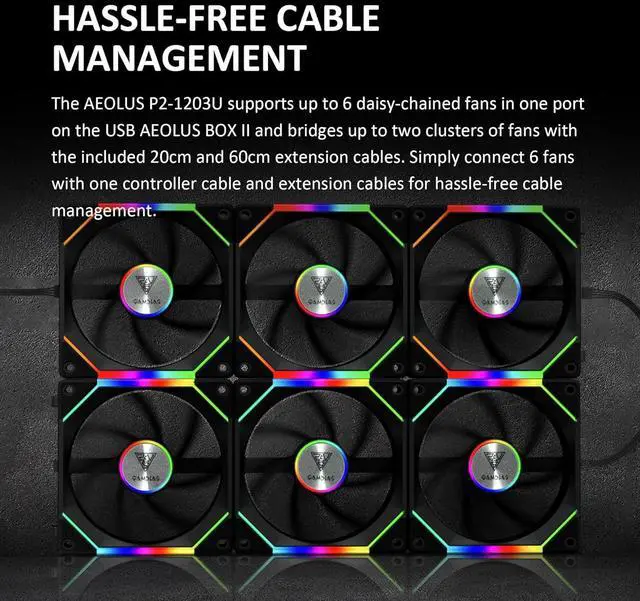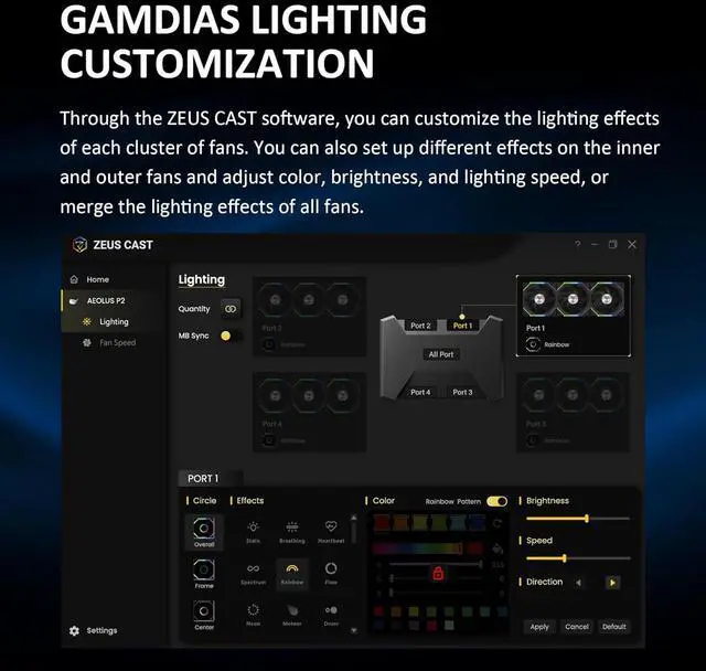 Customizable RGB Lighting with ZEUS CAST Software: Designed with dual infinity mirrors and lighting strips on the frame and around the aluminum logo plate, the RGB computer case fan is compatible with both USB AEOLUS BOX II and ZEUS CAST software, allowing users to adjust fan speed and lighting effects.