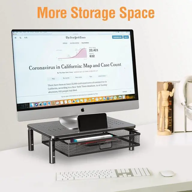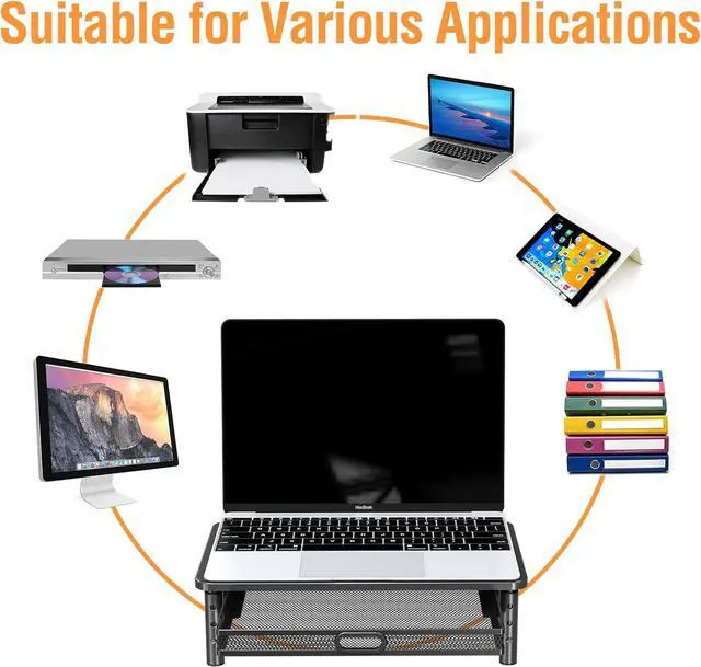 Sturdy Metal Stand Riser - This monitor stand riser is of high-quality manufacturing and materials. It can hold up to 44 lbs and is sturdy enough to ensure the stability of your monitor, computer, PC, printer, or books.