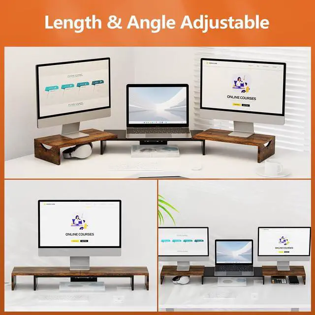 Adjustable Length & Angle: The monitor stand riser length can be adjusted from 31.3 inches to 52.9 inches, and the angle can be adjusted +/-90 degrees, you can change the length and angle of your visual as you like. Helping you organize the desk reasonably, and find the most comfortable posture during long-time work, ease your neck and back.