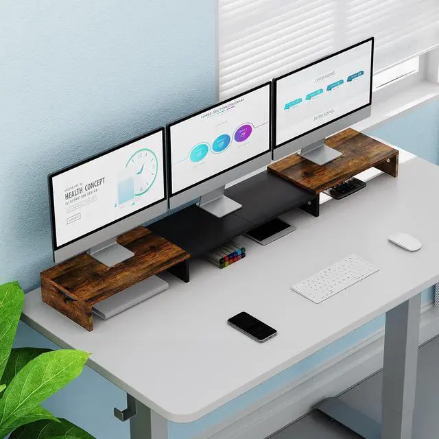 Triple Monitor Stand: The computer stand can accommodate 2-3 monitors, which is an ideal choice when you need multiple computers to work together. And it works on both laptops and desktops. With a maximum weight of 44 pounds, you don't have to worry about collapsing or shaking during use.