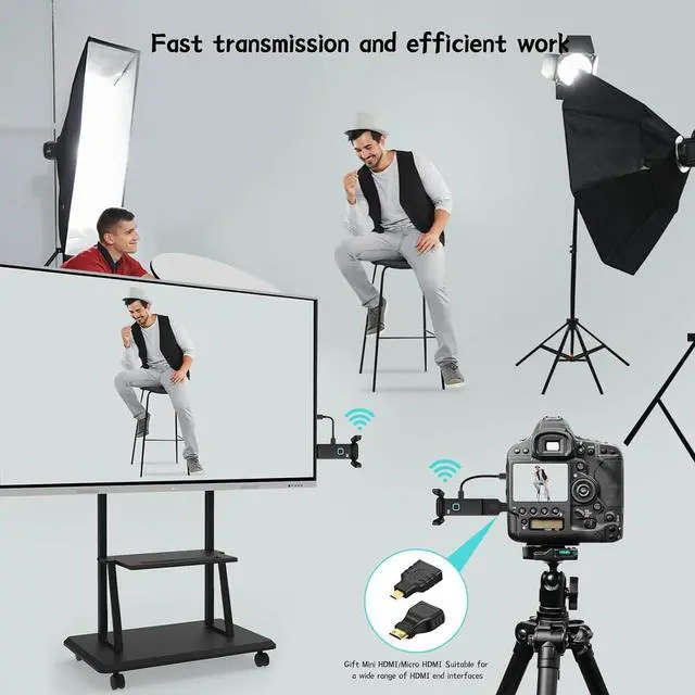 Universal Compatibility : This new upgrade wireless HDMI connector equipped with 3 accessories. USB C to HDMI 4K adapter/Micro HDMI adapter/Mini HDMI adapter, you will have both HDMI wireless and USB-C wireless at the same time.Seamlessly interfaces with most HDMI display devices on the market. Effortlessly cast content from laptops, PCs, cameras, set-top boxes, cable boxes, gaming consoles and more to HDTVs, projectors, monitors,smartphones, tablets, iPads. Note: If the HDMI wireless kit is used in an Apple TV box, the output resolution of the TV box needs to be adjusted to 1080P 60Hz.