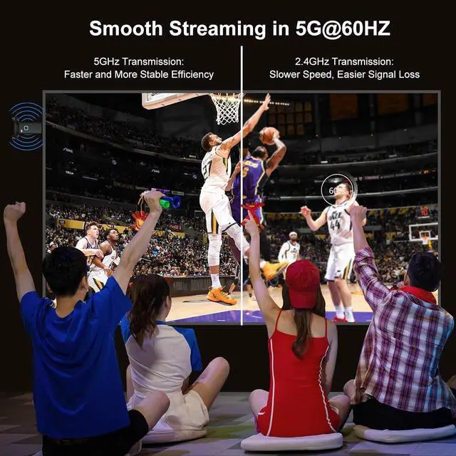 Dual frequency stability, dual antenna design : Wireless HDMI splitter leveraging advanced 5.8GHz/2.4GHz dual-band wireless transmission technology, it ensures stable signals with minimal latency, bidding farewell to buffering and interruptions, allowing for an unfettered audiovisual experience. Simply connect the HDMI transmitter to laptops, cameras, gaming consoles, and the HDMI receiver to TVs, projectors, or other display devices to embark on a new era of wireless transmission.