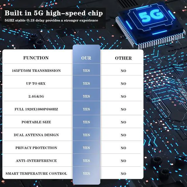 Efficient heat dissipation and comfortable use. New upgrade G58 Wireless HDMI one transmitter and two receivers, with its efficient heat dissipation design, intelligent temperature control technology, safe material selection, and strict quality control, has successfully achieved safety features.