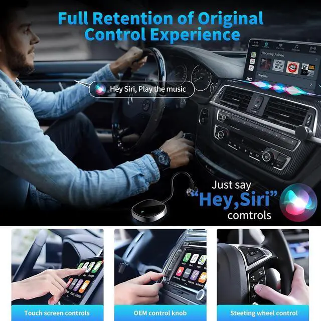 Multi functional device, suitable for various occasions Wired apple carplay car system has multiple functions, such as Siri, navigation function, phone function, calendar function, music playback function, control of car radio, air conditioning and other functions. carplay adapter for iphone can provide users with convenient services and ensure safe driving for drivers.