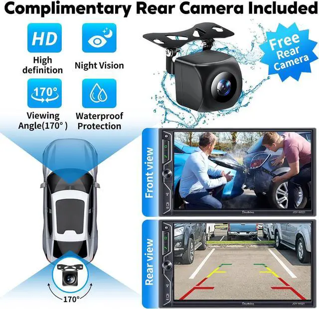 Backup Camera: The car radio supports the rear and front view and will display the image automatically when the vehicle shifts into reverse. HD night vision rear view camera is included, ultra-wide viewing angle of 170 ° and a fully waterproof design, helps to park more safely and easily