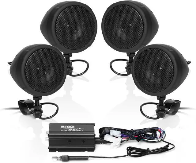 BOSS Audio Systems MCBK470B Motorcycle Bluetooth Speaker System - Class D Compact Amplifier, 3 Inch Weatherproof Speakers, Volume Control, Great for Use With ATVs and 12 Volt Vehicles