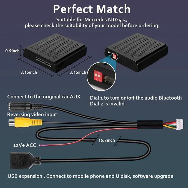 CARabc Wireless Carplay Fit for Apple Carplay&Android Auto, Fit for Mercedes Benz A/B/C/E/CLA/GLA/GLK/ML/SLD with NTG4.5 System - Bluetooth, Mirror Link, Siri Voice, USB, DVR and Camera Input Etc
