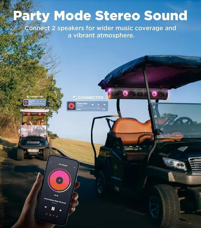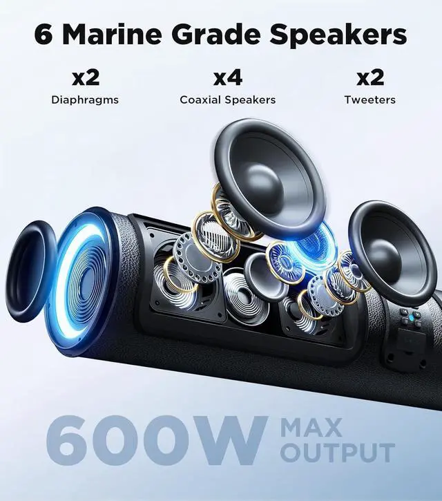 Pro-Grade UTV Sound Bar600W peak Class D integrated amplifier deliver stadium-level sound. Even at high volume, experience crystal-clear highsperfect for helmet rides or high-speed off-roading