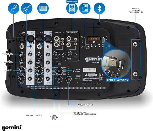Gemini Portable PA System with Stands - 600W Bluetooth Speaker System with 6-Channel Mixer, Dual 10" Speakers, Mic & Cables - Complete All-in-One Kit for Small Events, DJs & Karaoke (ES-210MXBLU-ST)