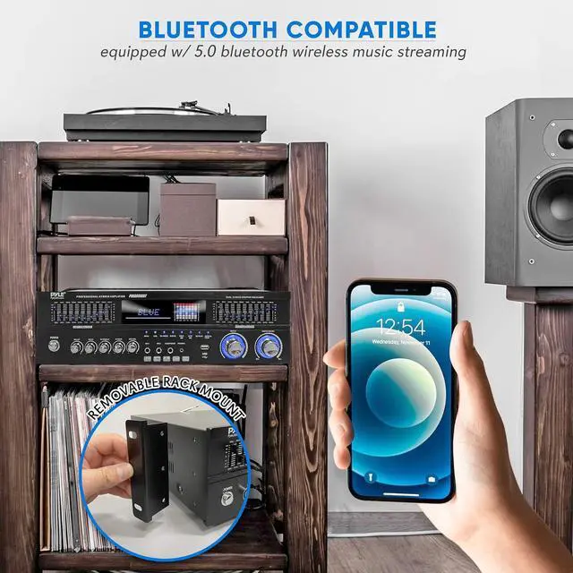 BLUETOOTH-COMPATIBLE: The professional integrated indoor house stereo receiver is equipped w/ bluetooth wireless music streaming. Works w/ todays latest devices including smartphones, tablets, laptops and computers with hassle-free receiver pairing