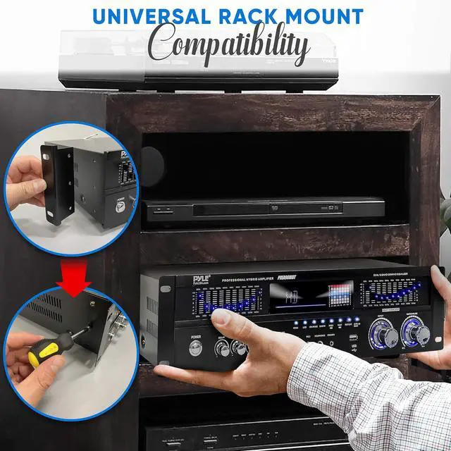 1600-WATT POWER: The Pyle 6-Channel Hybrid Home Theater Amplifier is perfect for your karaoke & home entertainment system. It gives you 1600W peak power to be used for multi speakers w/ 4 ohm impedance allowing you to enjoy high quality amplified audio