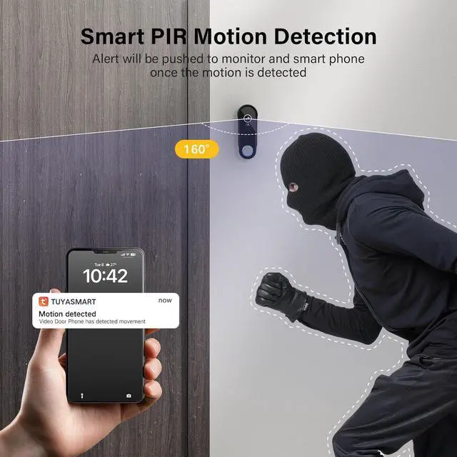 Stay Alert with Motion Detection: Wireless video doorbell features a 160° wide-angle lens instantly detects movement within 5 meters, sending alerts to your phone and indoor monitor for enhanced security.