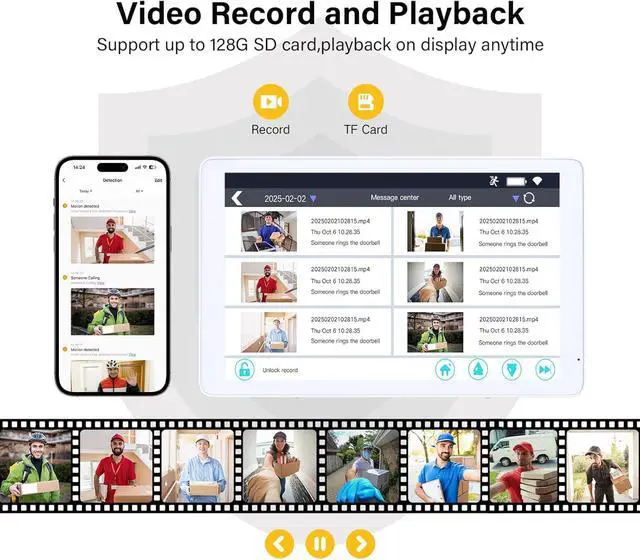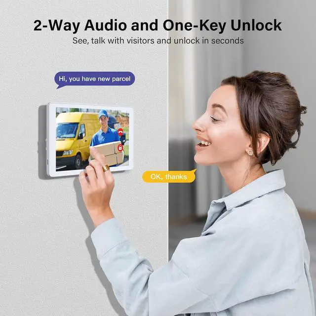 High-Definition Monitoring: HD Doorbell camera with 8" touch screen, providing clear visuals and easy control for a comprehensive home monitoring solution.