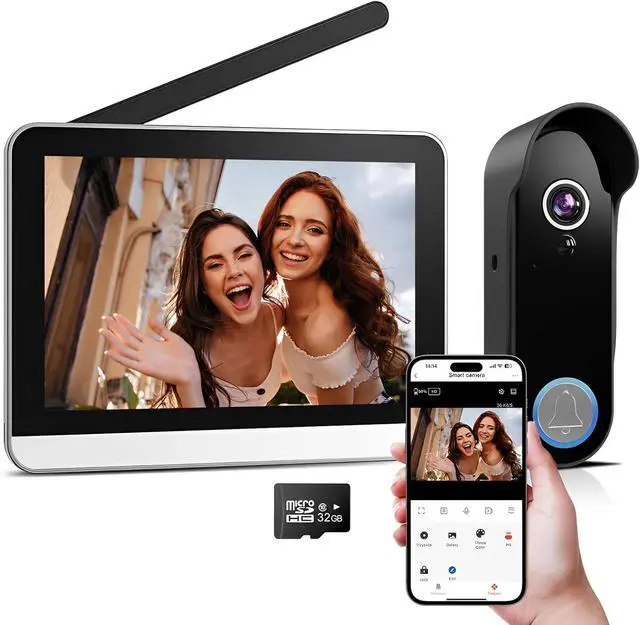 Wireless Easy Installation: No cables or drilling required. This wireless doorbell camera with monitor connects easily via Wi-Fi and 915MHz signal, offering superior coverage and compatibility with the Tuya App for smartphone control.