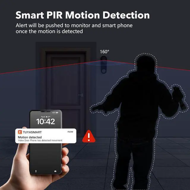 Stay Alert with Motion Detection: Wireless video doorbell features a 160° wide-angle lens instantly detects movement within 5 meters, sending alerts to your phone and indoor monitor for enhanced security.