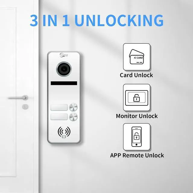 3-in-1 UNLOCKING AND AUTOMATIC VIDEO RECORDING: The device has multiple unlocking methods. You can unlock it by ID card, APP and screen monitor. Very convenient and flexible. When motion detection is triggered, the camera will automatically capture or record video and save it in the monitor's Micro SD card (including 32G SD card). You can view the footage via your smartphone at any time.