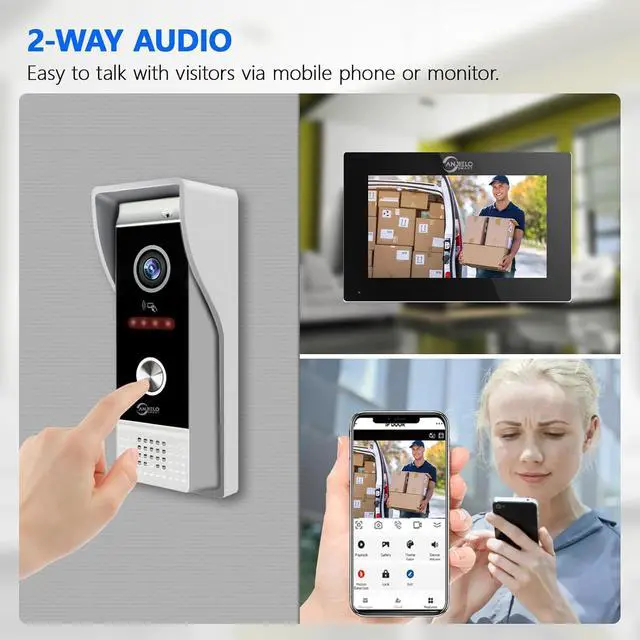 7-Inch Touch Monitor & 1080P Doorbell:Featuring a 7-inch touchscreen monitor with hands-free operation and Wi-Fi connectivity, this system ensures effortless control. The outdoor doorbell comes with a weatherproof cover, built-in infrared sensor, and a 1080P camera with 160° wide-angle viewing, night vision, and vandal-resistant design. It is compatible with all 12V electronic locks for enhanced security.