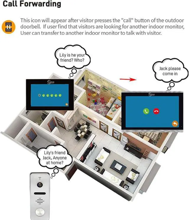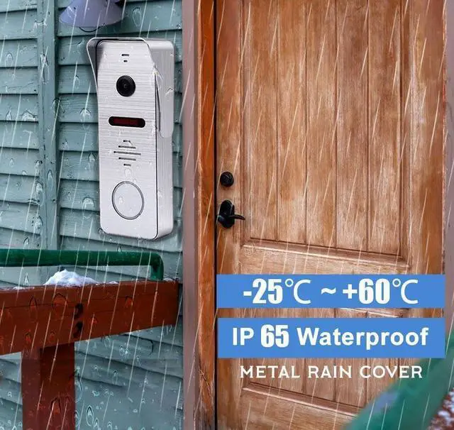 1080P FULL HD CAMERA & 7 INCH TOUCH SCREEN MONITOR::10 inch TFT touch screen monitor with slim design, support smart TUYA APP wireless WiFi, intercom hands-free.1080P HD camera, 160o wide angle, with rain cover built-in speaker and microphone, built-in infrared sensor, IR night vision, rainproof, dustproof and anti-vandalism.