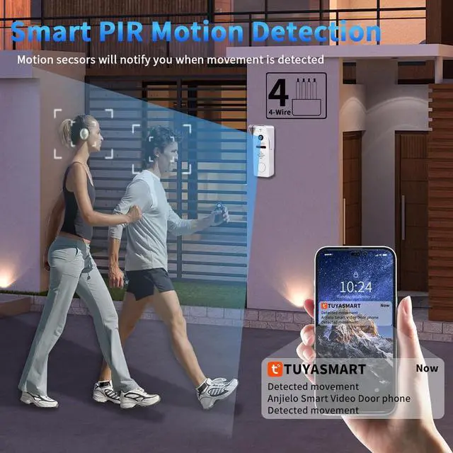 REAL TIME MONITORING AND NEVER MISS A VISITOR:Upon the press of the doorbell, you will receive instant notifications on both your monitoring screen and mobile device, ensuring you never miss a visitor again. For those moments when you are unable to answer, the doorbell's automatic video recording feature captures all activity, granting you the ability to review footage at your convenience.