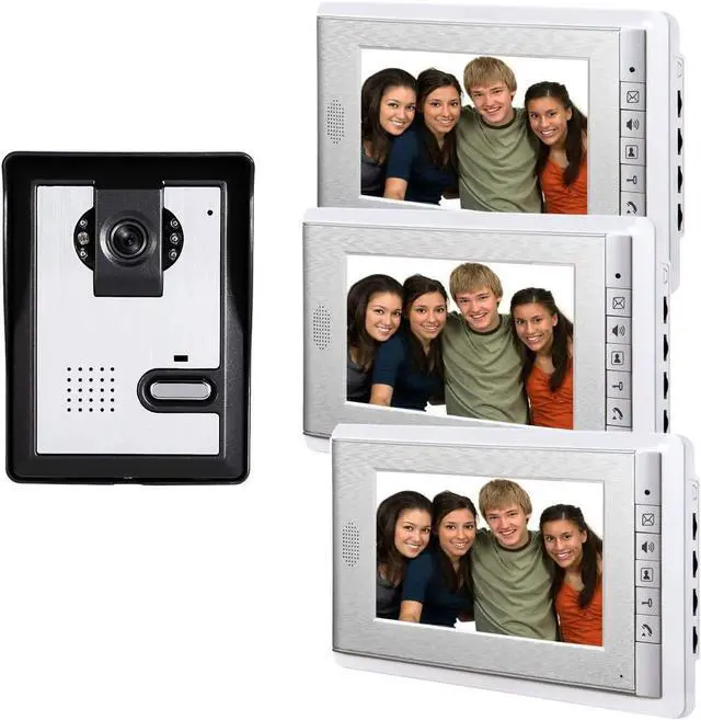 The video intercom doorbell system has 1 doorbell camera and 3 LCD video monitor. You can both see and speak with all visitors.