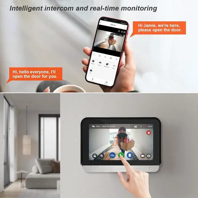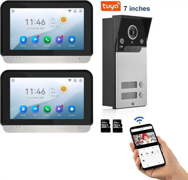 Intelligent Control: Strong connection ability, support up to 4 indoor units, 2 outdoor units and 2 CCTV, complimentary 10m line and 32GB card, and support up to 128GB TF card expansion, suitable for apartments, villas, hotels, offices and other places. You can open the lock remotely through the Tuya APP and keep track of the situation at any time.