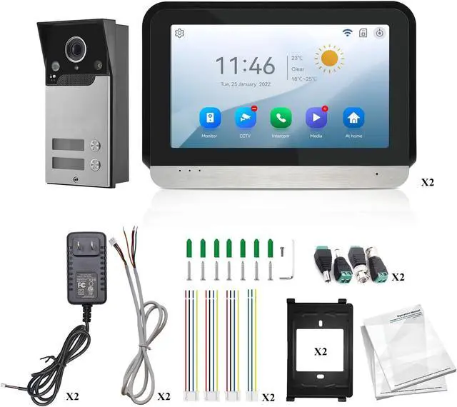 WiFi Wired Video Doorbell System, 7 Inch Ring Video Doorbell Camera with Monitor, Support Two-Way Intercom Unlock & 1080 HD IR Night Vision for Villa Home Office Apartment, with 1 Camera & 2 Monitors