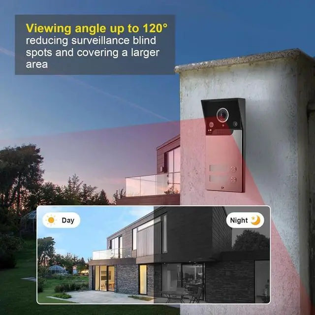Two-Way Intercom: WiFi wired video doorbell camera 7-inch display can achieve real-time two-way intercom communication. With motion detection and anti-intrusion alarm function, video recording content can be played on demand at any time. With infrared full-color night vision and 120° wide-angle lens, there is no blind spot for day and night monitoring.