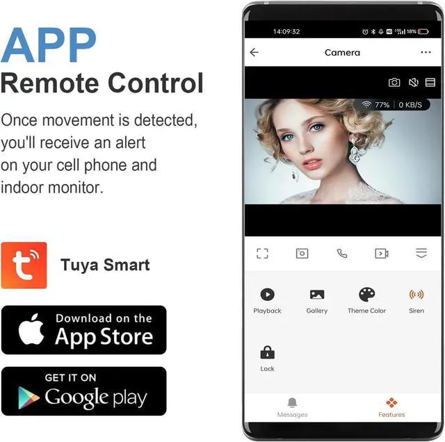 Hd Touch Screen: The smart doorbell is equipped with IPS touch screen, 1024×600 HD resolution, image clear, the operation is simple and convenient, the elderly and children can easily use. It also has features such as electronic photo frame, calendar and weather display, and supports ten language settings, including English, Chinese, Russian, French, German, Arabic, Portuguese, Spanish, Italian, and Polish.