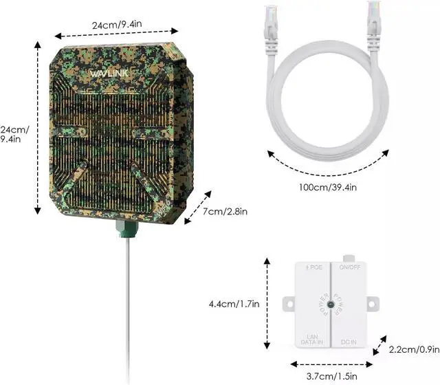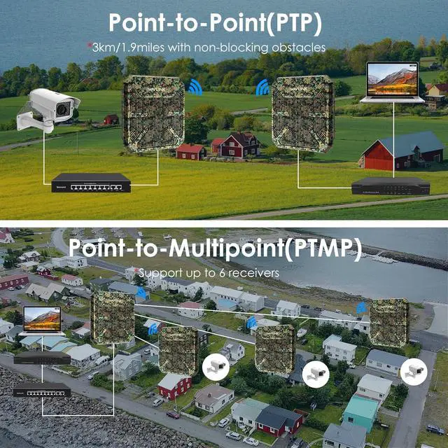 300M Directional Coverage and 3KM Long-Range Transmission:4 directional built-in 12dBi antennas(2 x 12dBi 2.4GHz antennas; 2 x 12dBi 5GHz antennas) and achieve 300m stable directional wireless coverage. It can significantly improve the transmission and reception performance of wireless signal. Note: Long-range wireless data transmission above 3km/1.9miles (Only for paired PtP or PtMP transmission only) has been tested in the barrier-free field.Please avoid the obstacle between the wavlinkdevice and the target area,otherwise the performance will be limited much