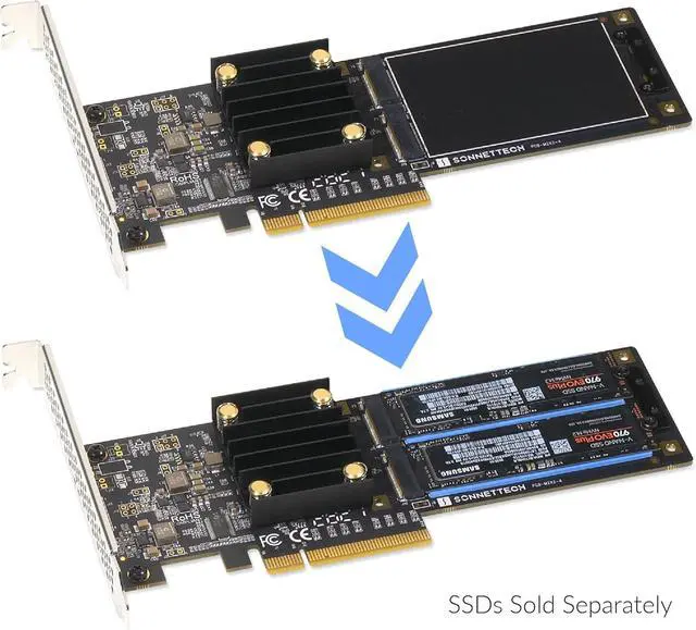 • Add up to 16TB of Ultra-fast Storage- Mounts one or two M.2 NVMe SSDs (sold separately) in an x8 PCIe slot.