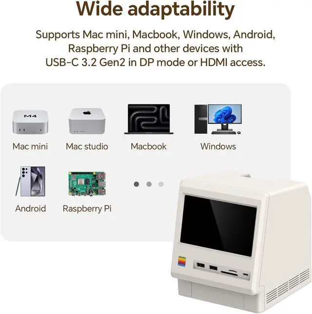 Retro Mac mini Dock with Modern Performance:Classic Macintosh-inspired design combined with todays technology. More than just a Mac mini dock its a powerful productivity hub that transforms your desktop.
